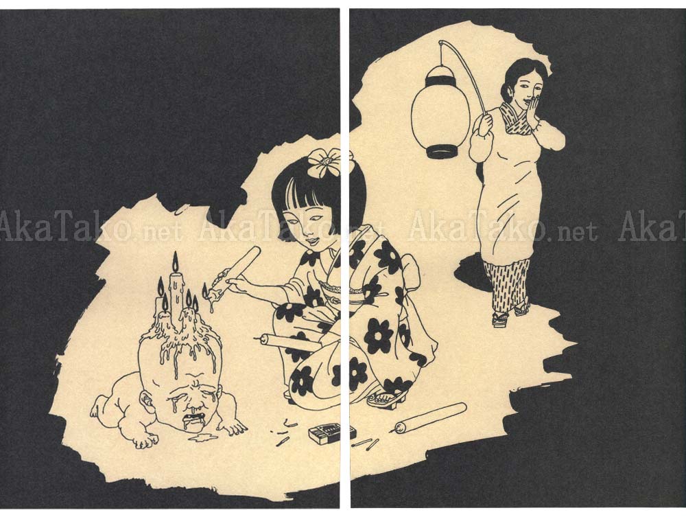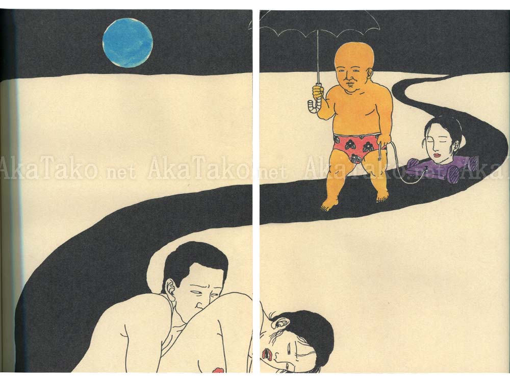 Softcover book is filled with full page prints of Toshio Saeki's odd and disturbing eroguro images. The printing and binding process for this book is unique - instead of single pages printed front and back and bound into a book a single wide format page has been printed with a full image, folded in half and then bound into the book. Full images start on right page, turn the page and the image is completed. Very unusual effect with beautiful results. Some works stretch across four pages!