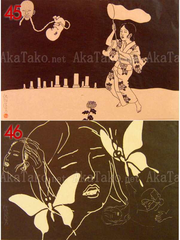 Incredibly rare prints from March 15th, 1972, which were originally made for the "Akai Hako" book by Toshio Saeki. Prints are silkscreened on paper. Originally a boxed, limited edition of 50 prints. Only 200 boxed editions were made. This boxed set has been split up and prints are sold individually. A total of 47 prints are available. Photos of the box are available upon request.