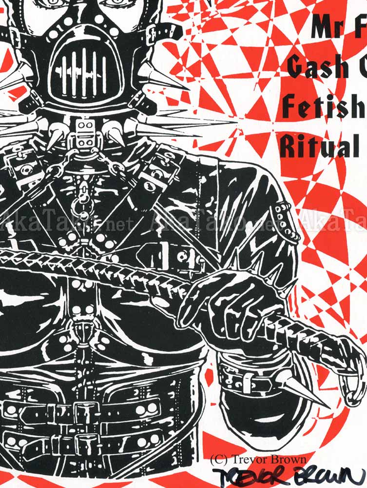 Very rare promo poster for a fetish / S&M event "Unleashed" featuring "Dom Bitch" by Trevor Brown. Originally printed in black and white in "Temple of Blasphemy". Later painted for inclusion in the "Rubber Doll" book. Printed by Flesh Wound.