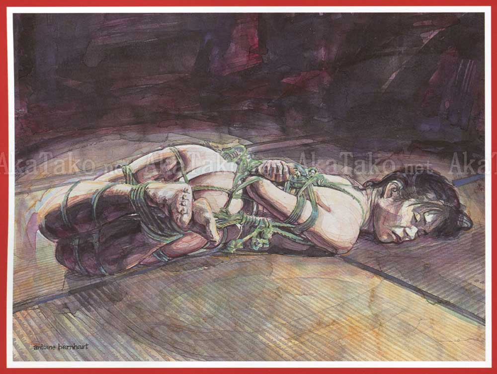 Softcover book of works - first half of book is kinbaku drawings by Trevor Brown. 16 plates from the "Japabon" series. All very soft pastel colors created by colored pencil on paper. Flip the book over for a new cover and works by Antoine Bernhart (Bloodshed). 29 plates of graphic and visceral (literally) images.