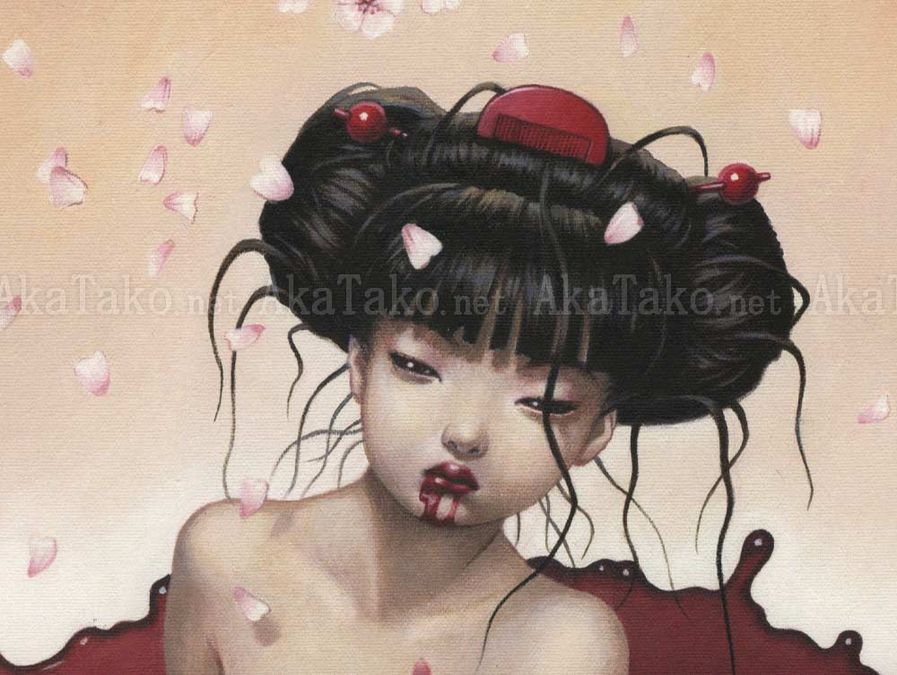 Brand new poster of Trevor Brown's "Seppuku" painting. Poster is SIGNED and NUMBERED by Trevor Brown in metallic gold marker. Limited edition of 50. Solid black border. Published in the "Girls War" book.