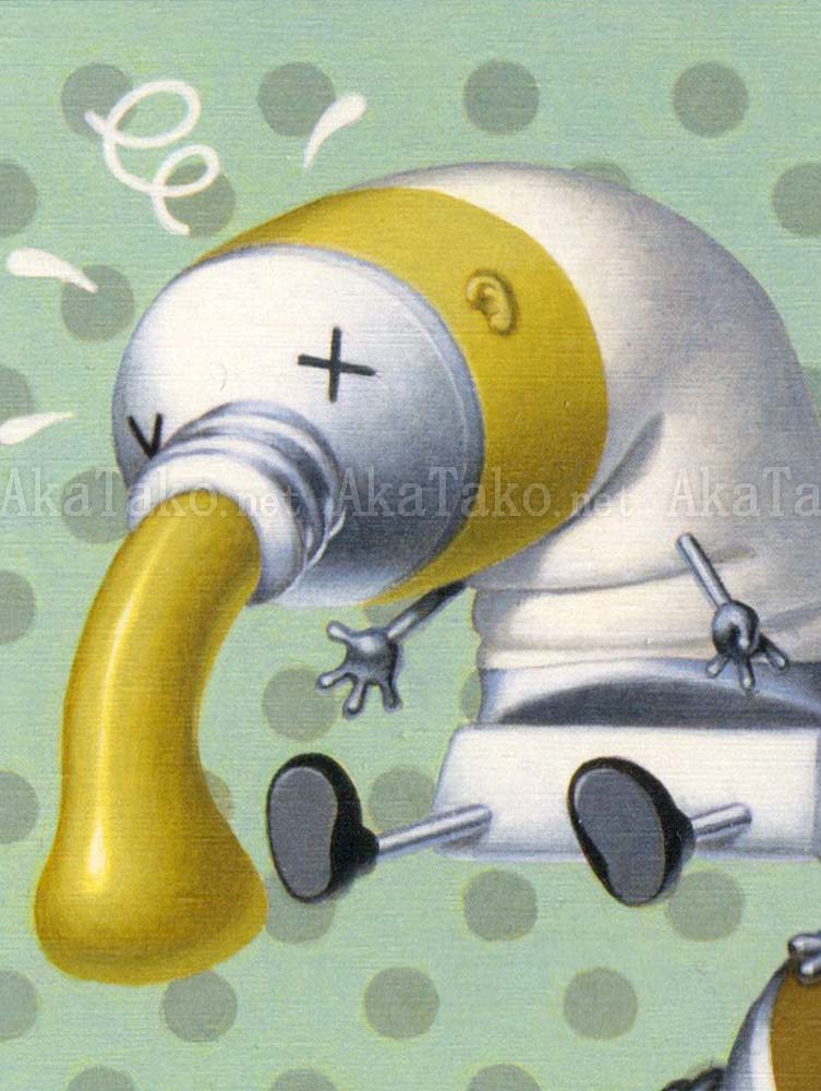 Original painting "Snot 'n' Shit" is part of the "Toy Box" series by Trevor Brown. The postcard version contains this rhyme: "delightful / it ain't / keep the caps on / your tubes of paint".