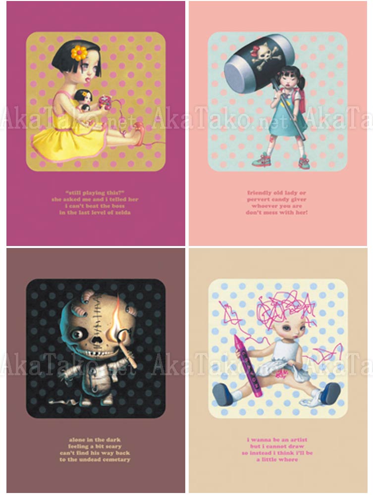 All twenty of the paintings from Trevor Brown's "Toy Box" series are collected together in a boxed postcard set. Each one includes a little rhyme like "sunday morning / wet and cold-ish / out for a walk / with my pet goldfish". SIGNED inside the front cover.