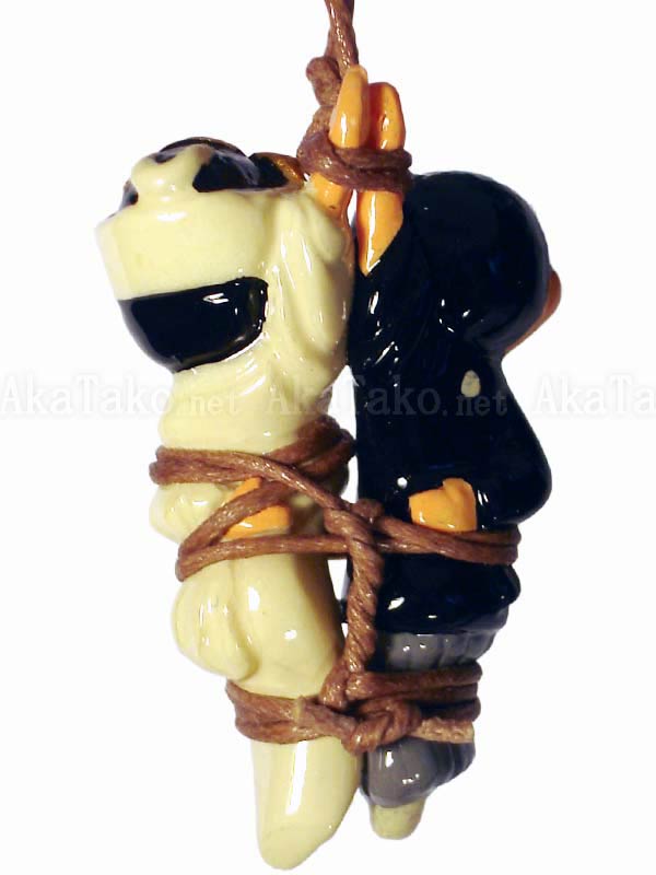 This traditional Japanese wedding couple are joined in more ways than one. Each is suspended from one of their hands with the other tied behind them. Kinbaku cell phone strap handmade in Japan and signed by the artist (in red on back of each figure). Comes on a paper display card as shown in second photo.