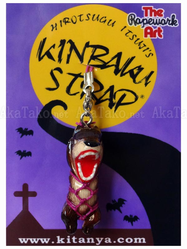 Werewolf kinbaku charm. Kinbaku cell phone strap handmade in Japan and signed by the artist (in red on back). Comes on a paper display card as shown in second photo and has a lobster claw clasp to make attachment easier.