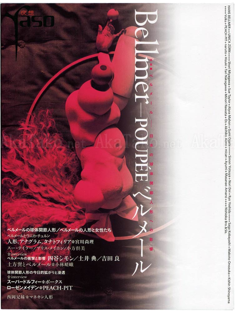 List of artists in this issue: Hans Bellmer, Unica Zürn, Shori Miyagawa, Sue Taylor, Alyce Mahon, Gumi Ogata, Simon Yotsuya, Nori Doi, Ryo Yoshida, Saga Kobayashi, Makoto Onozuka, Kishin Shinoyama, Volks, PEACH-PIT, naruto, Hizuki, Tari Nakagawa, Minori Nawata, Os, Akihiko Aono, mican, Ayumi, Masanao, Amano, Nishioka Bro. & Sis., and many more.