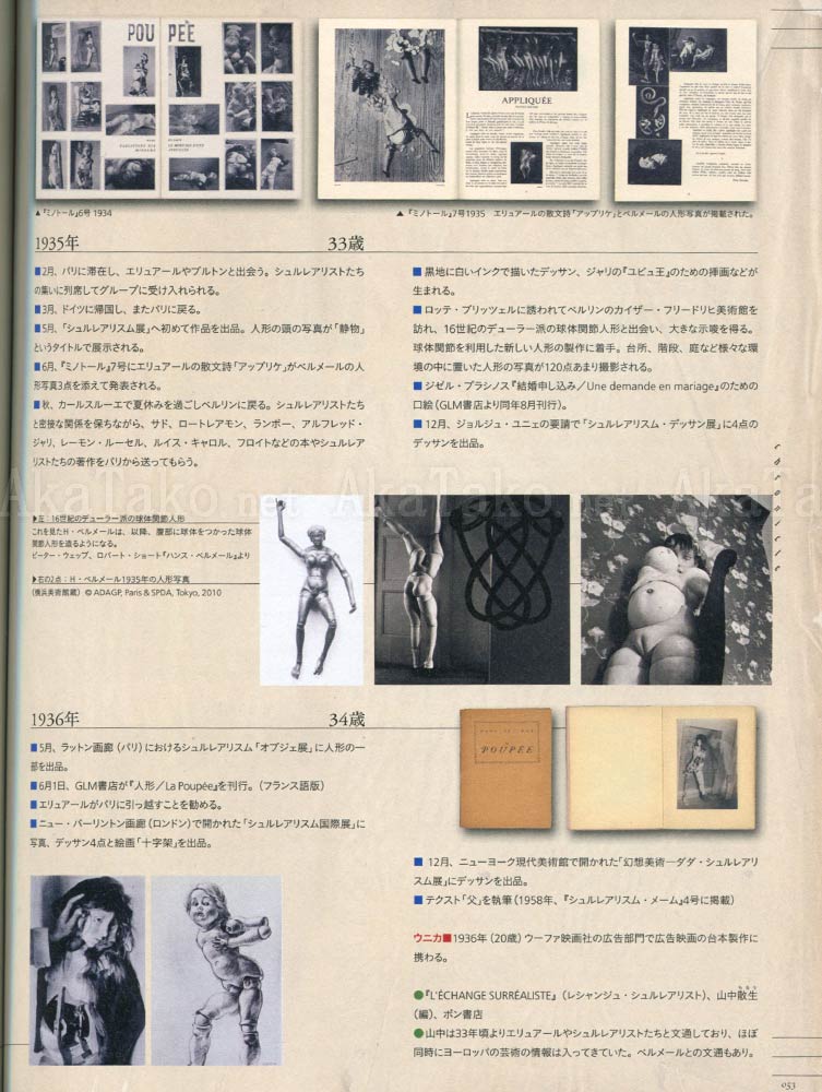 Yaso Japanese art magazine - Bellmer Poupée. Filled with contemporary Japanese doll artists. The main focus is on articulated dolls beginning with the groundbreaking work of Hans Bellmer. There is an extensive chronicle of doll history and development stretching from 1902-2010. Text is 99% Japanese.