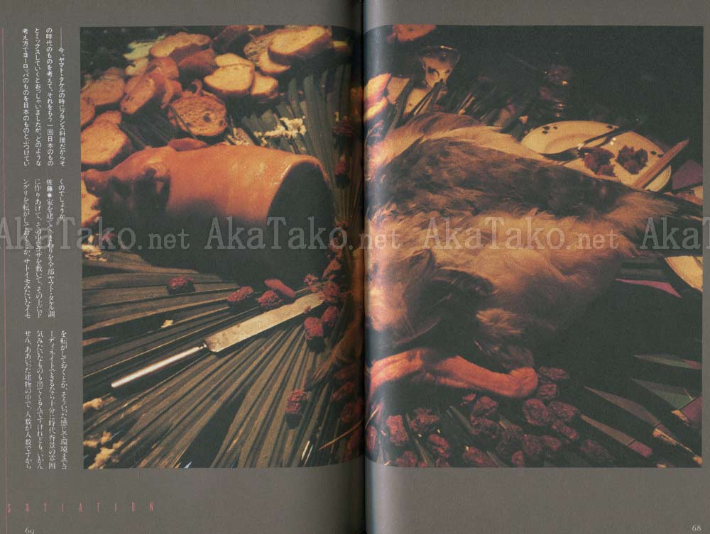 Vintage YASO magazine printed in 1988 devoted to the joys of eating and overeating. Subtitle is "Eating to Freaks". Text is 100% Japanese. Printing is all black and white except for about 10 full-color pages of decadent food spreads.