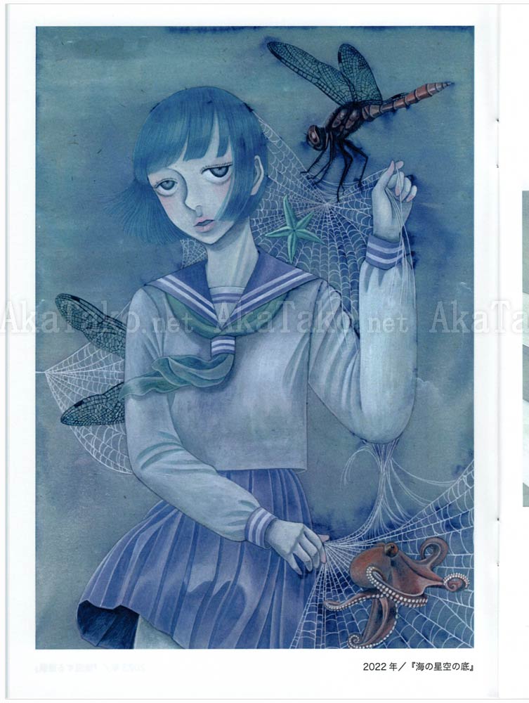 Brand new book produced by Chika Yamada collects her works from 2020-2023. Oversized blue schoolgirls inhabit a surreal city where things are not always as they seem. Sea creatures float through the air, spiderwebs become playthings, and wild animals become close friends.
