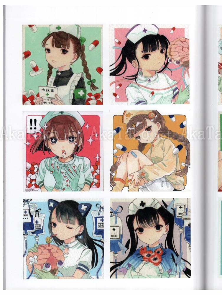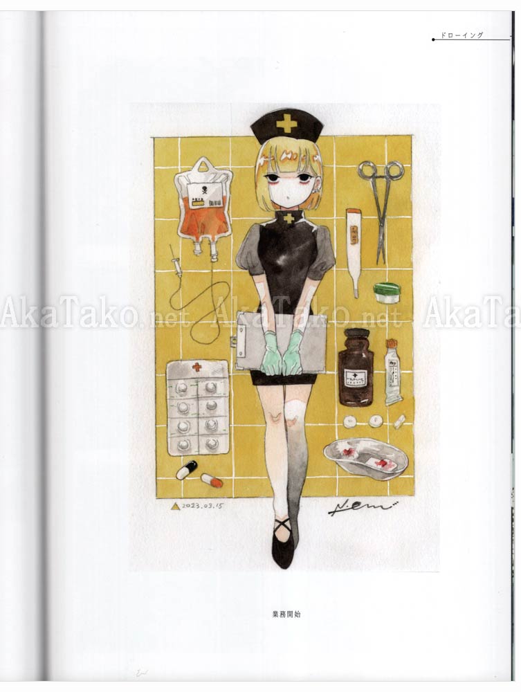 Brand new art book by Em Nishizuka "Nautilus II - Phantom Hospital Art Book" includes 59 nurse and hospital themed artworks. More food artworks and a collection of paintings from February 2024 solo exhbition.