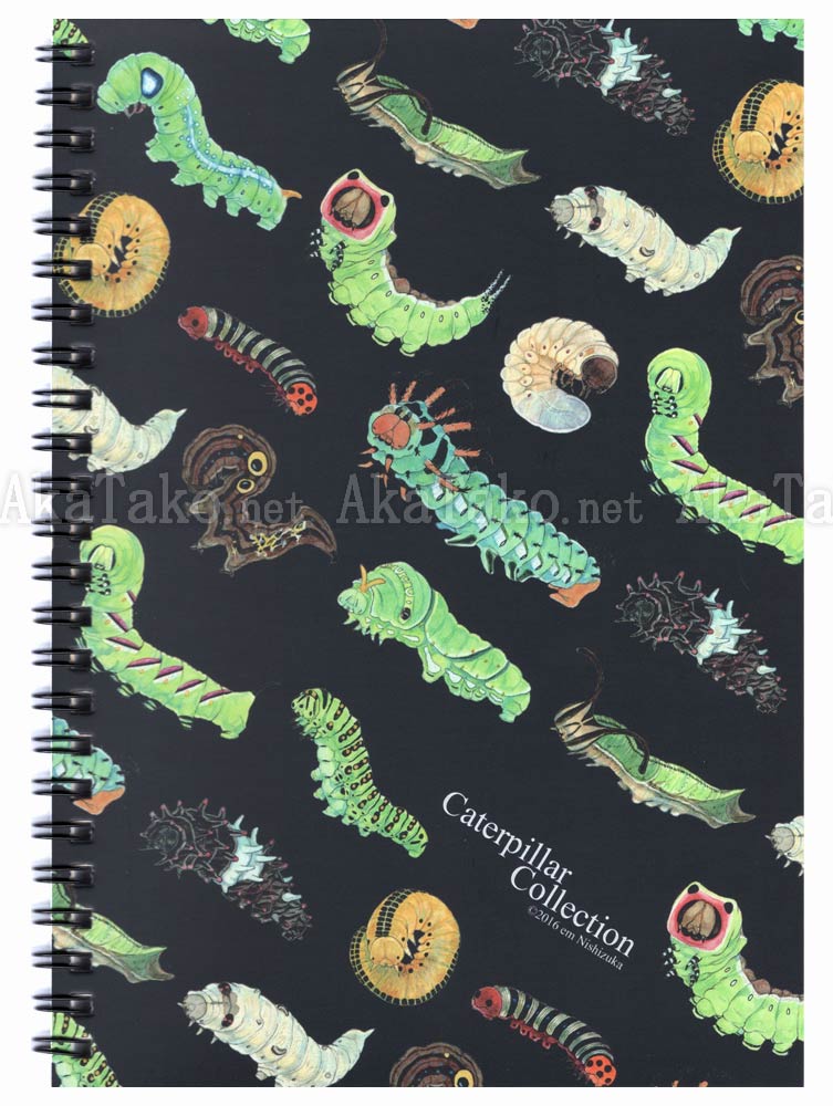 Em Nishizuka spiral bound notebooks are covered with her caterpillar illustrations. Both front and back cover are printed with the caterpillars. Interior pages have very light green caterpillar in each corner. Please note the difference between blank and lined pages!