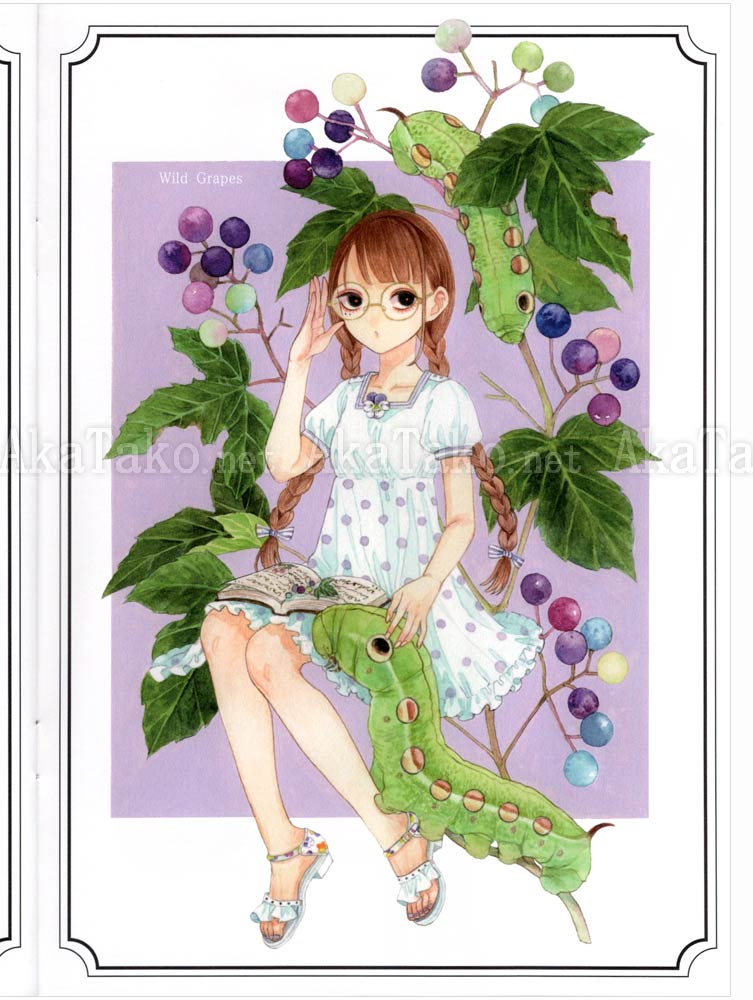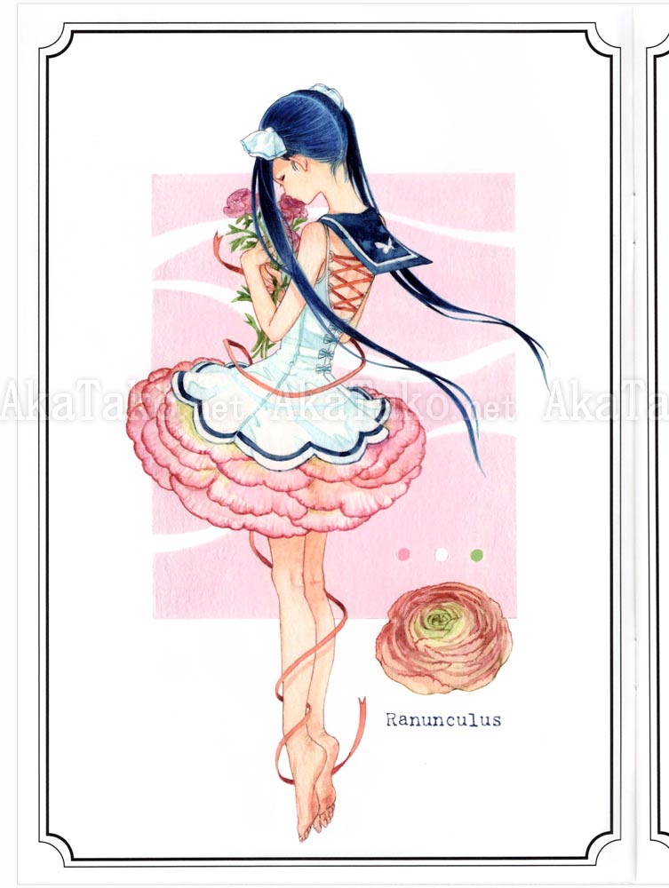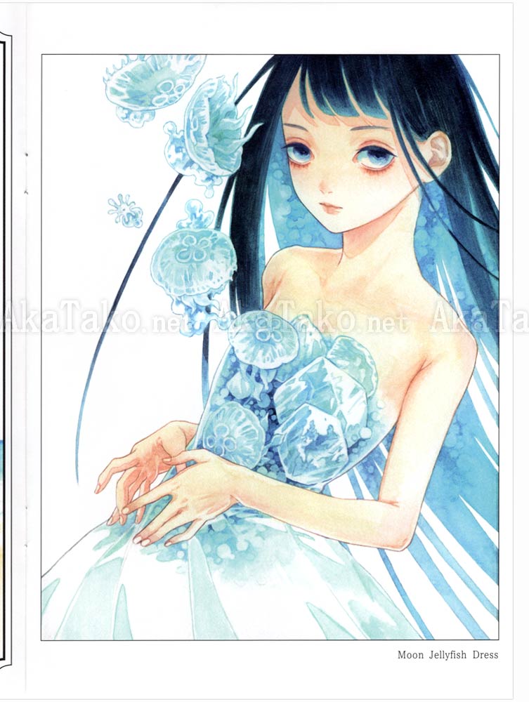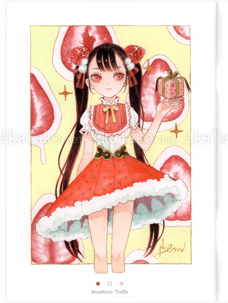 Em Nishizuka puts her imaginative fashion sense to the test with concept art for "Strange Dress". Sixteen different ideas ranging from flowers, sea creatures, seasonal themes including fruits and Christmas. Gold foil detail on the front cover.