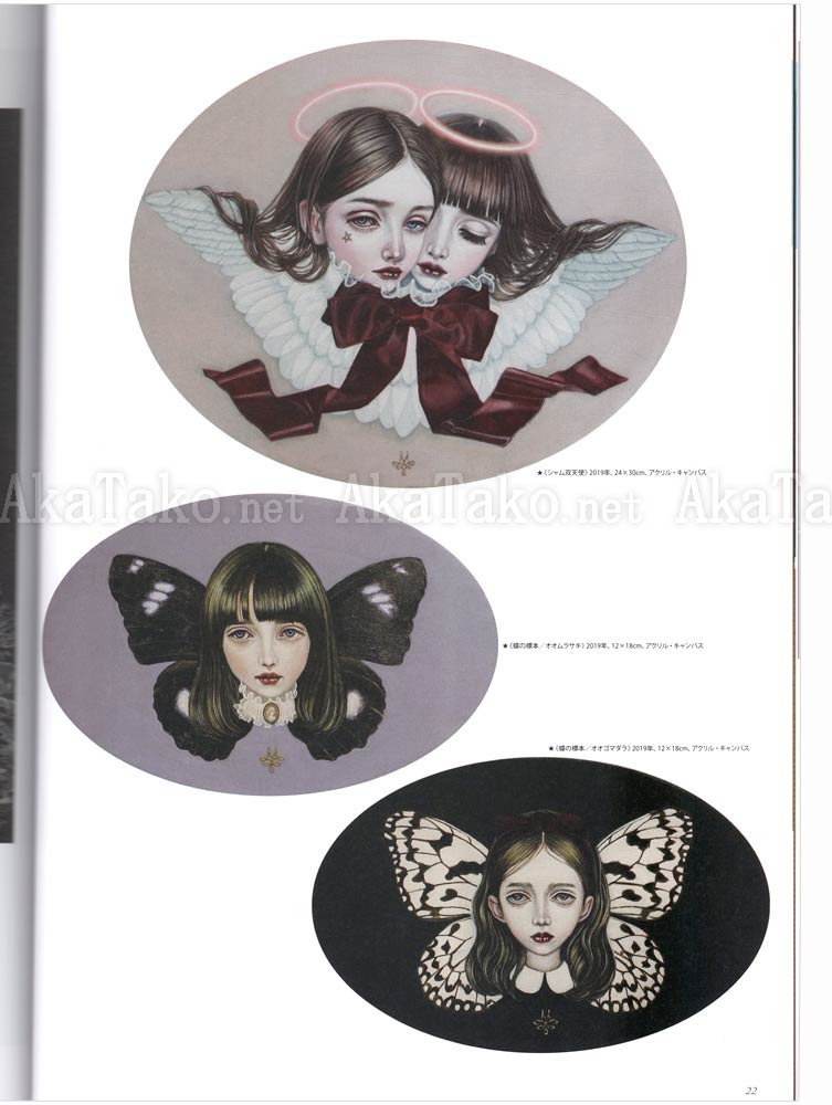 Additional featured artist are: Minae Takada, Mao Hamaguchi, Magane Okuda, Keisuke Tsuchida, Kana Minami, Yu Shirono, Kai Takeda, Tomoaki Murayama, Gen Hikage, and Hikaru Jinguji. A 4 page REPORT on the exhibition for Kozue Kuroki x Noboru Moai "Dark Fairytale" book release.