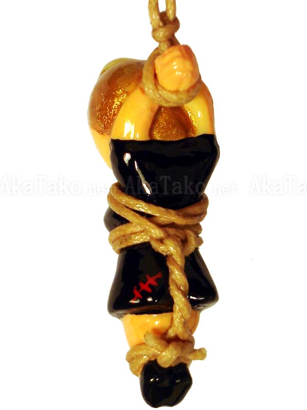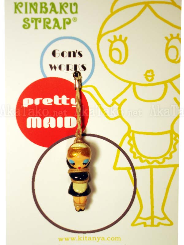 A French maid with golden hair waits to tidy up the room - if only she weren't tied up. Kinbaku cell phone strap handmade in Japan and signed by the artist (in red on back). Comes on a paper display card as shown in second photo.