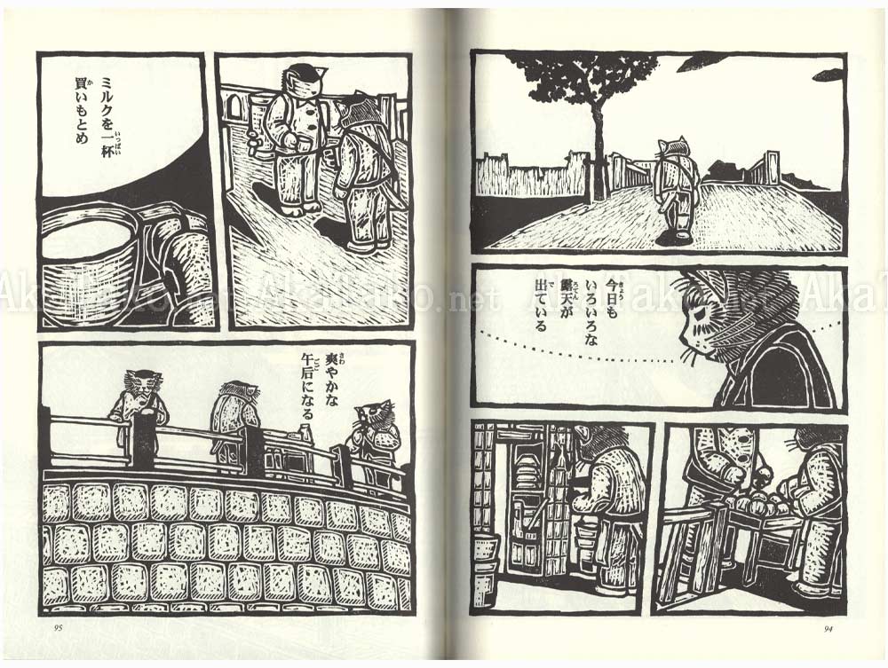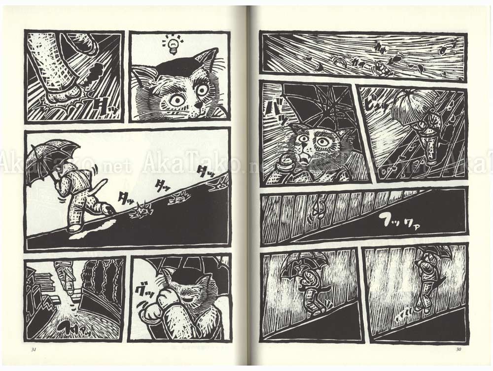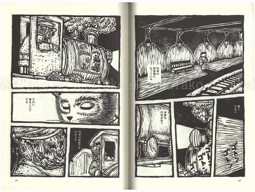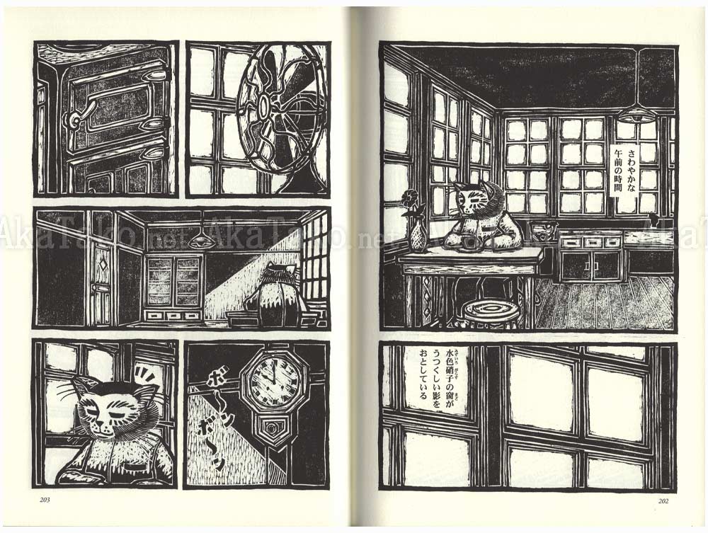 An incredible artistic accomplishment merging the world of woodblock prints and manga. The artist has created a nostalgic retro atmosphere with stories focusing on cats having a drink, avoiding the rain, going on a voyage, etc. A beautiful book!