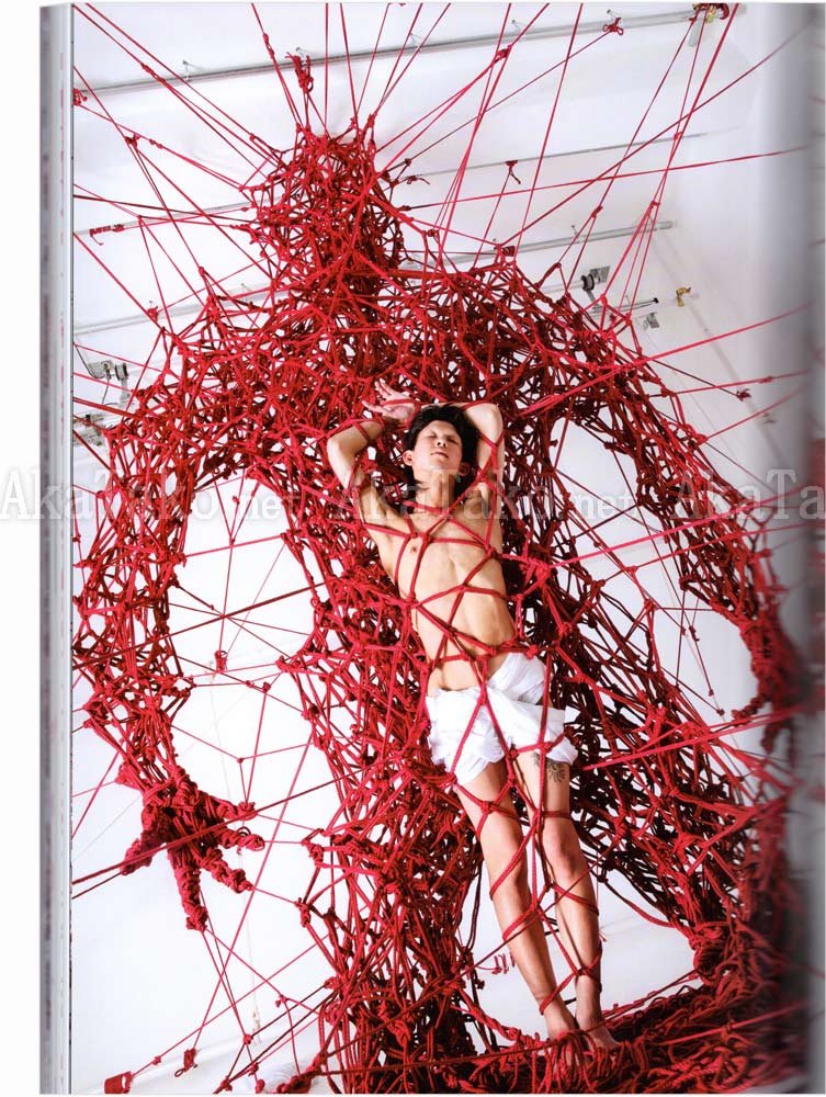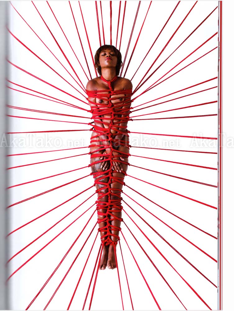 "The theme of Red series is 'connection'. When tying someone, it's not about capturing or tying that person. ... To me it feels like I am tying myself with the model like strings connecting two paper cups to make a paper toy telephone. ... This series expresses mothers, ancestors, nature, peers, DNA, the future, connections between hearts, inspiration, and other things. People are not alone. Everyone is connected to someone. ..." (Excerpt from text printed in book by Hajime Kinoko.)
