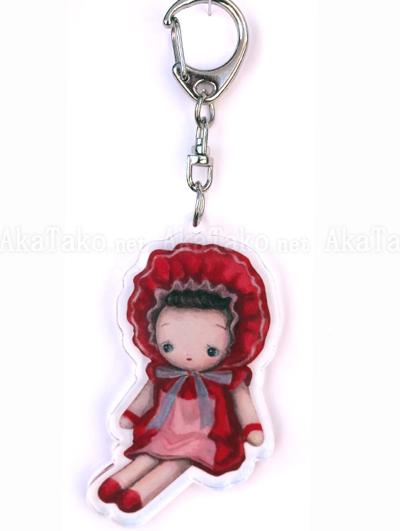 Doll: is a cute doll in a red bonnet. Acrylic measures approximately 2.8" x 1.75" (7.2 x 4.3cm).