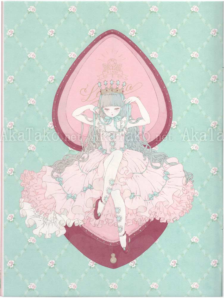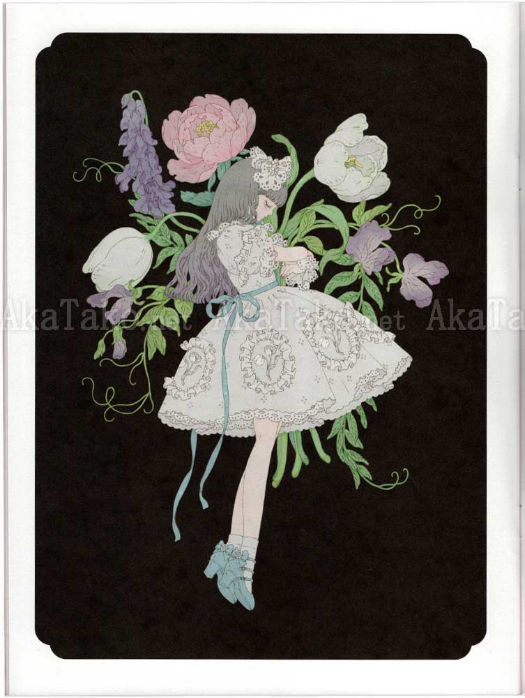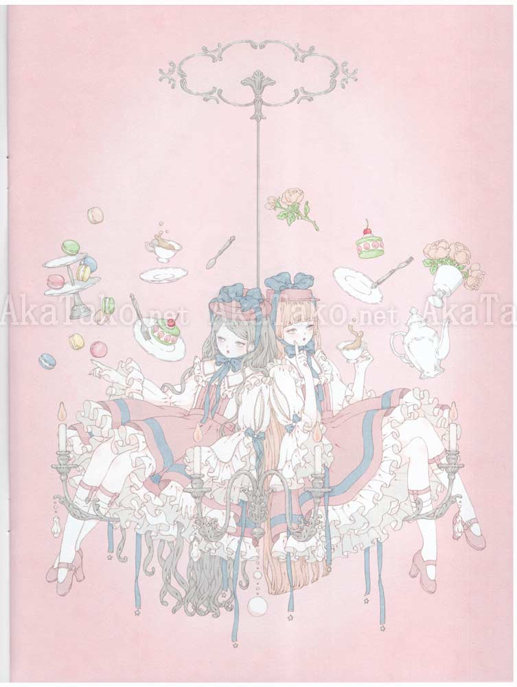 Brand new A4 sized art book self-published by Kira Imai includes 14 full color artworks. Ruffled dresses, oversized teacups, the dreamiest cakes and sweets, and giant flowers fashioned into dresses and skirts.