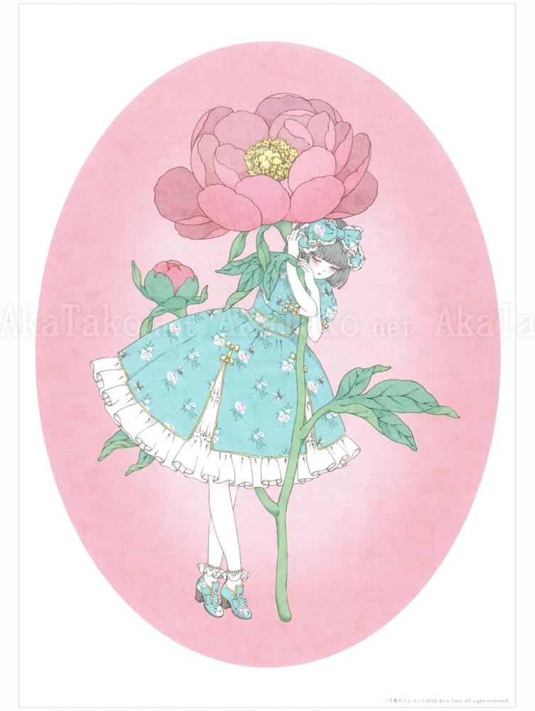 PINK: Pink oval background and pink flower. 「芍薬のドレス」