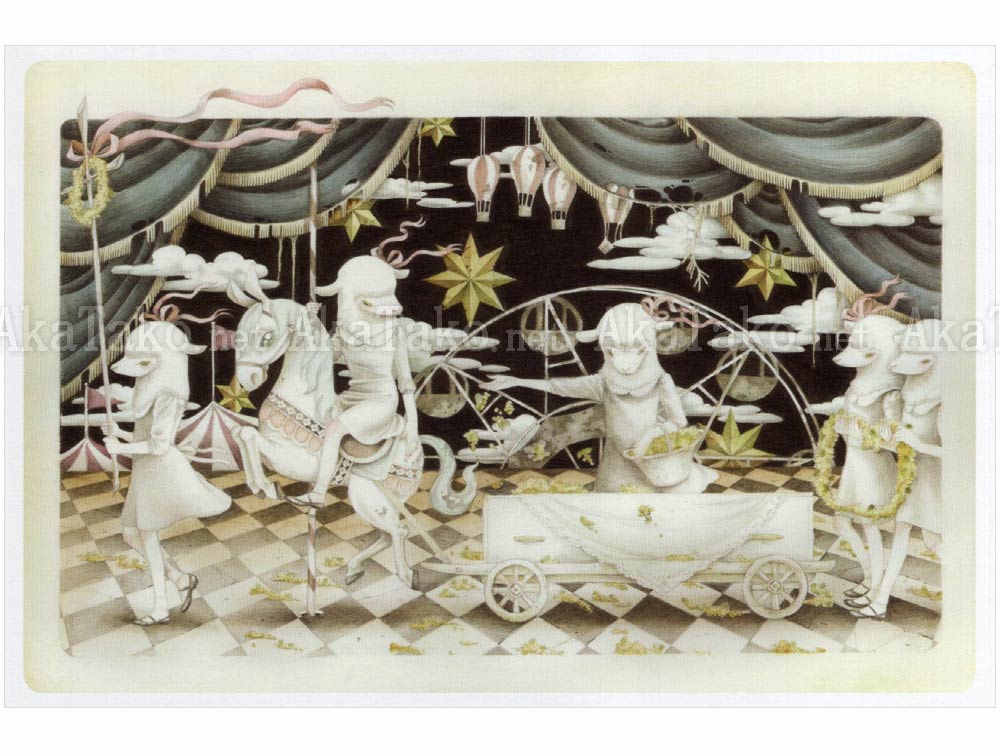 Set of six postcards featuring Kozue Kuroki's dreamy pastel artworks. Featured artworks were all created in 2012 and printed in her "Le Spectre des Couleurs de la Petite Mort". Titles (in Japanese only) are on reverse of each card along with full color accent images.