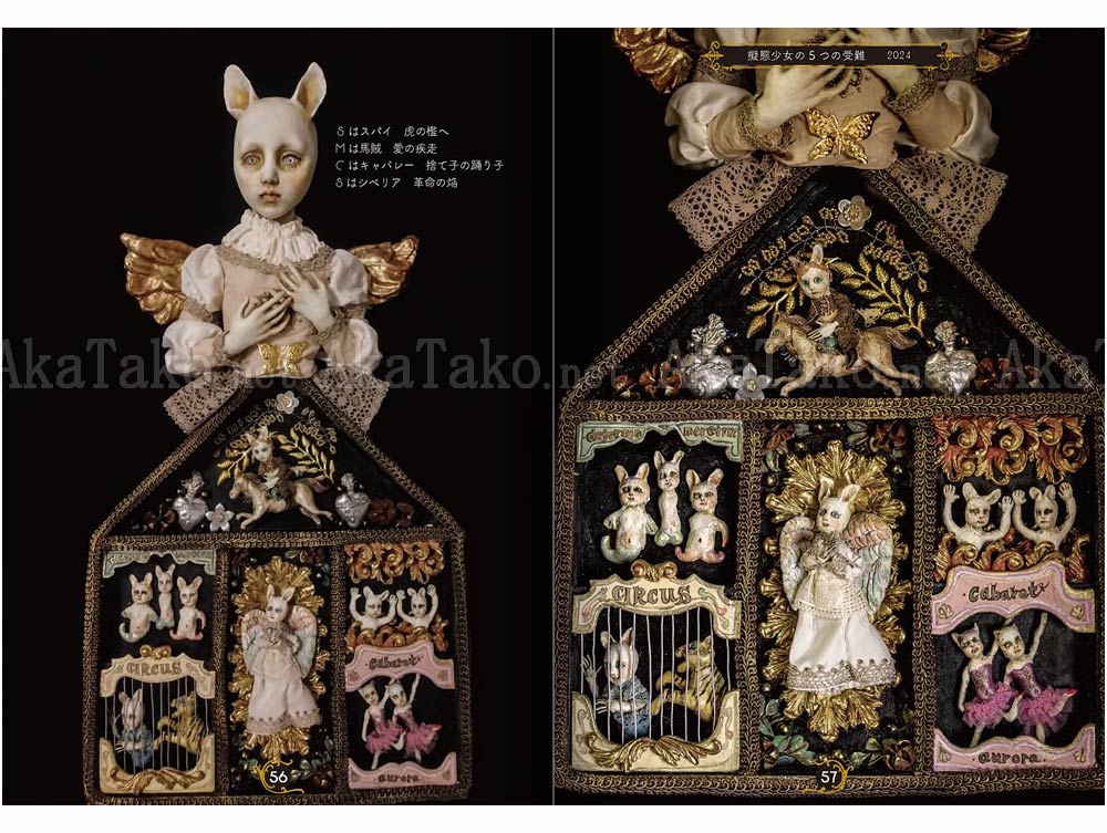 Mari Shimizu's latest book "International Girls' Expo - Passion Mimic Girl" is all about the women who bloomed beautifully and died purely. Ball-jointed dolls and doll objects filled with love and compassion for the girls who tried to survive. Book has four sections: Angeli in exiguo horto, Deus ex Machina, Salon Mustang, Passio Mimic Puella.