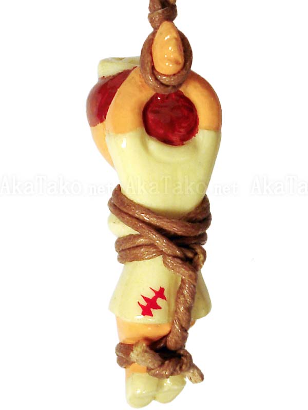 Brunette nurse is dressed in white from head to toe but tied up in Japanese rope bondage with her hands behind her head. Kinbaku cell phone strap handmade in Japan and signed by the artist (in red on back). Comes on a paper display card as shown in second photo.