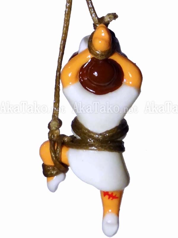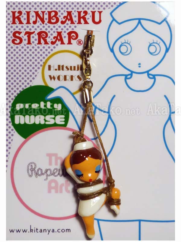 Pretty nurse remains calm and composed even though she is tied up in Japanese rope bondage. Her white uniform remains pristine with one leg suspended in the air and her hands behind her head. Kinbaku cell phone strap handmade in Japan and signed by the artist (in red on back). Comes on a paper display card as shown in second photo and has a lobster claw clasp to make attachment easier.