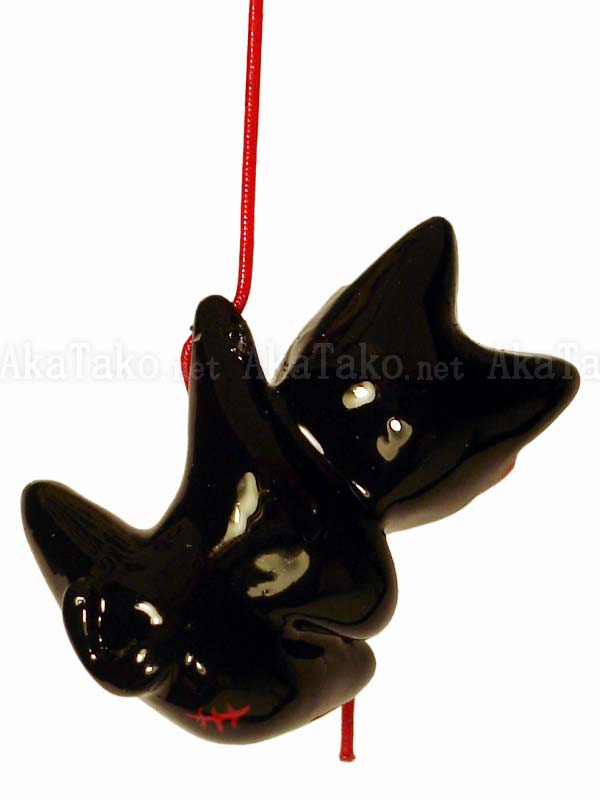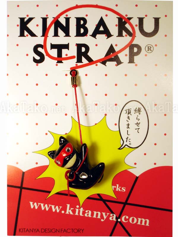 Nothing makes the black cat rope master happier than tying up bunnies and ladies in Japanese rope bondage. He's grinning ear to ear just thinking about it! Kinbaku cell phone strap handmade in Japan and signed by the artist (in red on back). Comes on a paper display card as shown in second photo.