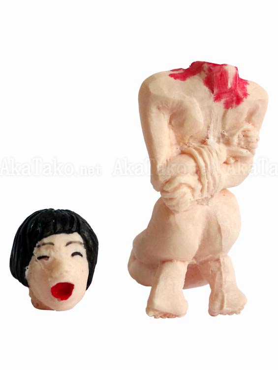 Handmade toy by Shintaro Kago. A kneeling woman's head has been cut off leaving a surprised look on her face.