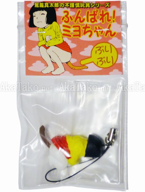 Handmade cell phone strap toy by Shintaro Kago. Poor Miyo-chan has braced herself to try to squeeze out this unko. (New shipment - Miyo-chan is peach color skin now, not bright white. New photos coming soon.)