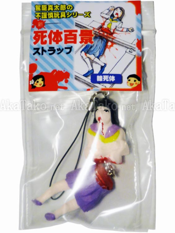 Handmade cell phone strap toy by Shintaro Kago from his "100 Famous Views of Corpses" series. A poor schoolgirl has been run over by a train and cut in half straight across the waist. Paint colors may vary a little because they are all individually created. If you need to see an exact photo please request one before buying.