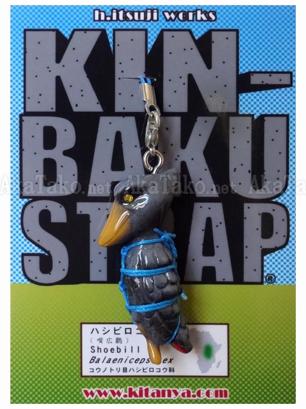 Shoebill kinbaku charm. Kinbaku cell phone strap handmade in Japan and signed by the artist (in red on back). Comes on a paper display card as shown in second photo and has a lobster claw clasp to make attachment easier.