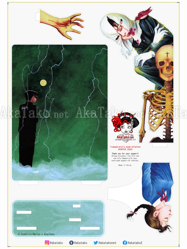 Special collaboration between Suehiro Maruo and AkaTako.net ! Clear acrylic art stand assembles to display your favorite artwork in a 3D layered form. Artwork first published as the front cover of the "Laughing Vampire" manga.
