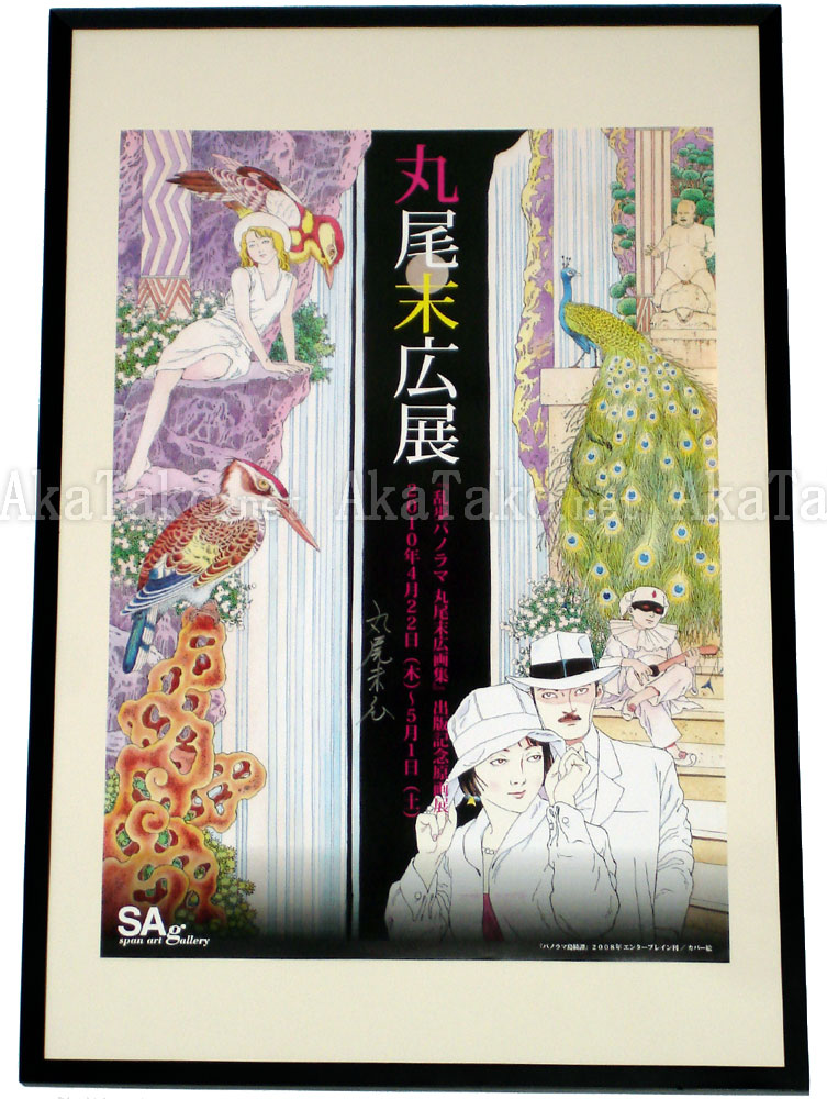 Brand new poster with the work of Suehiro Maruo. The poster features artwork from the cover of "Panorama Toukidan" - a couple dressed mostly in white, a peacock, a woodpecker, and other exotic birds.