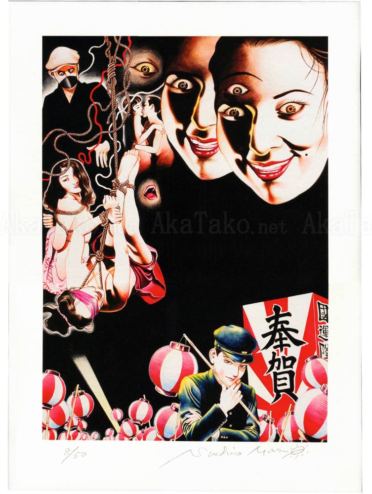 Brand new print SIGNED and NUMBERED by Suehiro Maruo is titled D坂の殺人事件. Loosely translated means "D Slope Murder Case". Limited edition of 50. This is number 8/50.
