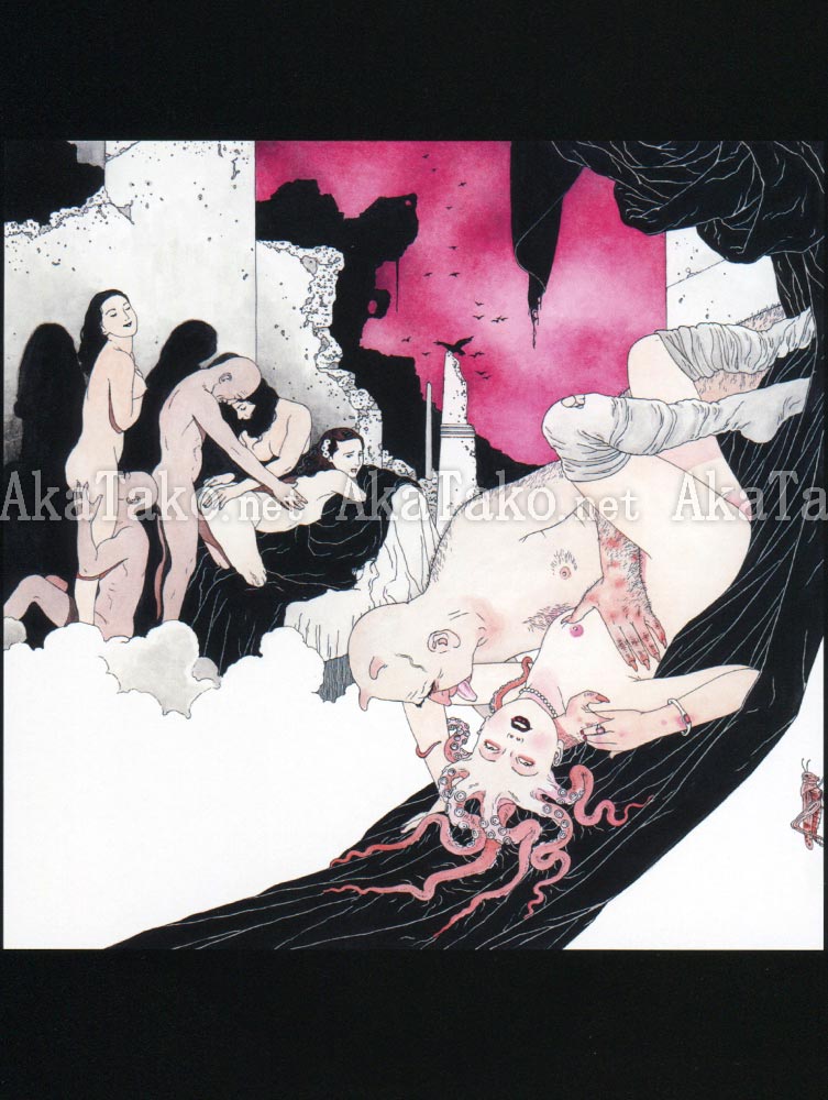 Brand new large size book is a great introduction to the color artwork of Suehiro Maruo. It is mostly full page color reproductions and also includes one fold out page with color illustration + 28 pages of black, white & red manga of "The Midget Is Dancing" - a graphic novel by Suehiro Maruo based on a story by Edogawa Ranpo. UNSIGNED copy.