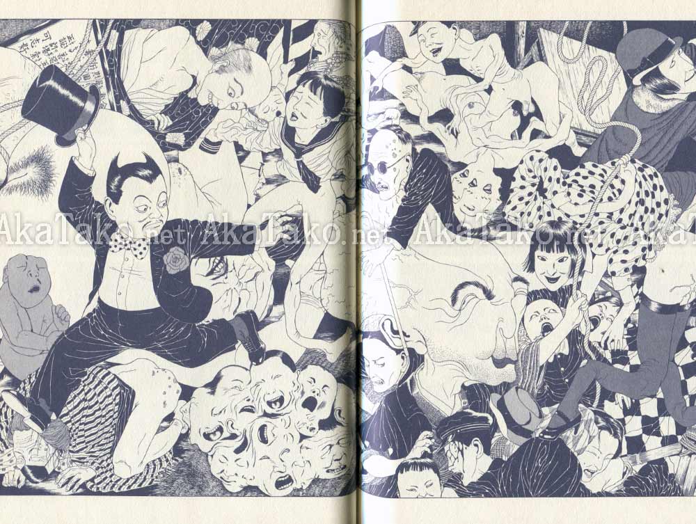 Suehiro Maruo's "Little Girl Camellia" comic book follows the story of Midori - an orphaned young girl who sells flowers in the street. She is taken in by performers in a freak show but lives a life full of abuse and violence. Story was made into a 52 minute movie "Midori" by Hiroshi Harada and a live action movie "Shoujo Tsubaki" directed by TORICO. Text is 100% Japanese. List of story titles.