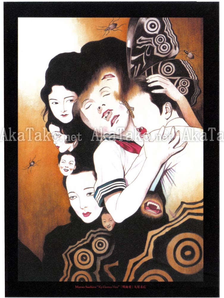 UNSIGNED Panorama postcard display set by contemporary Japanese artist Suehiro Maruo. There is a five-fold heavy cardboard display (which folds up into the little black package in second photo) with black stretch bands that hold a postcard in the center. Japanese instructions with pictures included so you can figure out how to do it yourself.