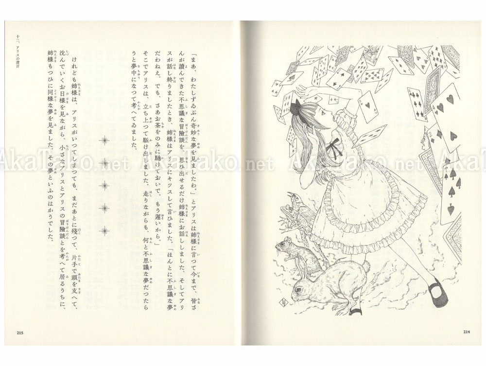 The special edition is limited to only 1000 copies and includes a hand SIGNED and NUMBERED certificate. The book itself has a dark red dust jacket (compared to the dark green of the regular edition) and includes a paperboard slipcase printed with Takato Yamamoto's full color "Alice in Wonderland" artwork.