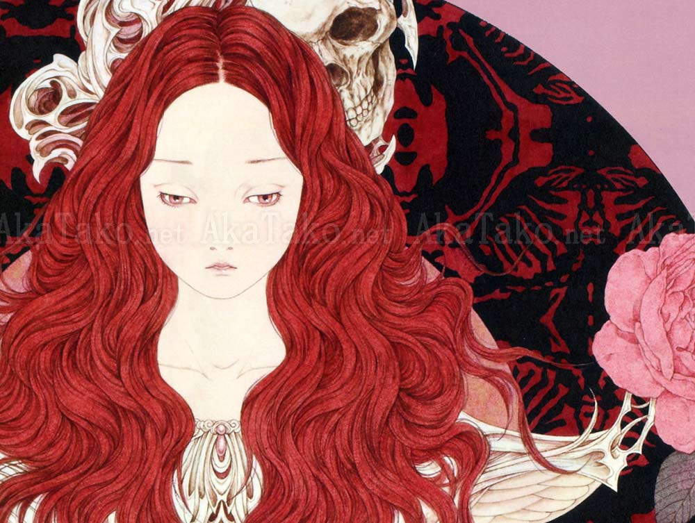 Brand new poster featuring "Strigoica III" by Takato Yamamoto. This is a new painting that has just been published in the "Necrophantasmagoria" book. Border is a mauve color and is SIGNED by Takato Yamamoto in gold marker.