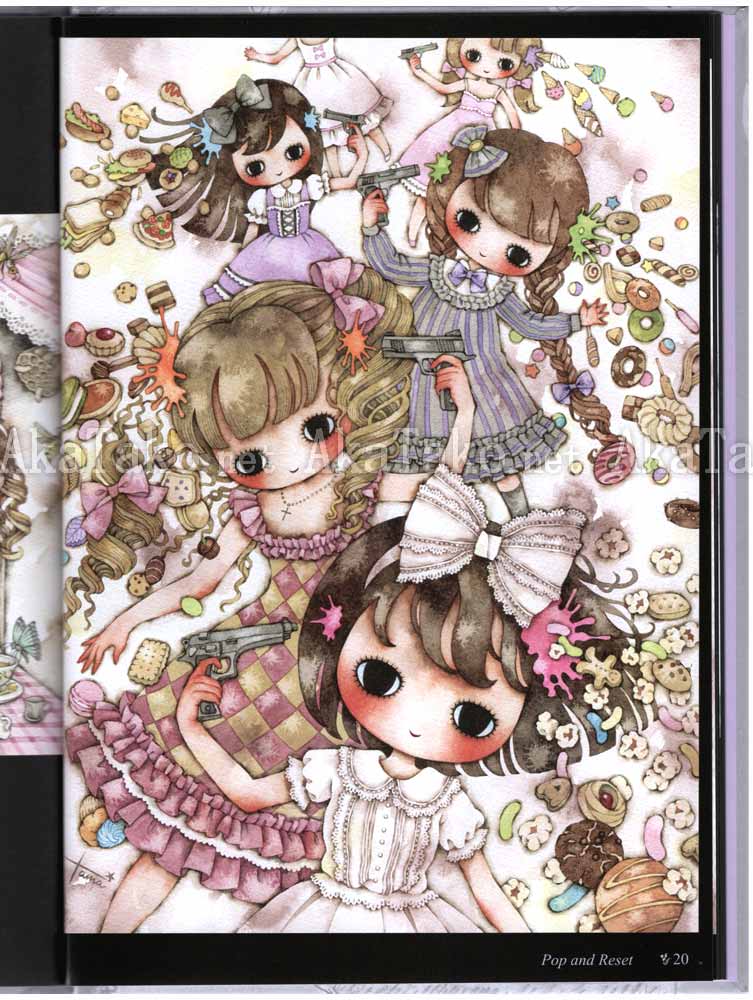Tama's seventh book is a cute and eerie paradise. Deep Memories of childhood games - a girl's regrets and conflicts. Book sections are Mistic, Irony, Scare, Dreamy, and Nostalgia. Includes over 40 new, full color artworks.