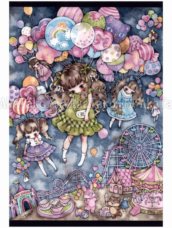 Your choice between four postcards of Tama's cute watercolor artworks. All originally printed in her book "Deep Memories". Each card measures approximately 3.9" x 5.875" (10 x 14.9cm).