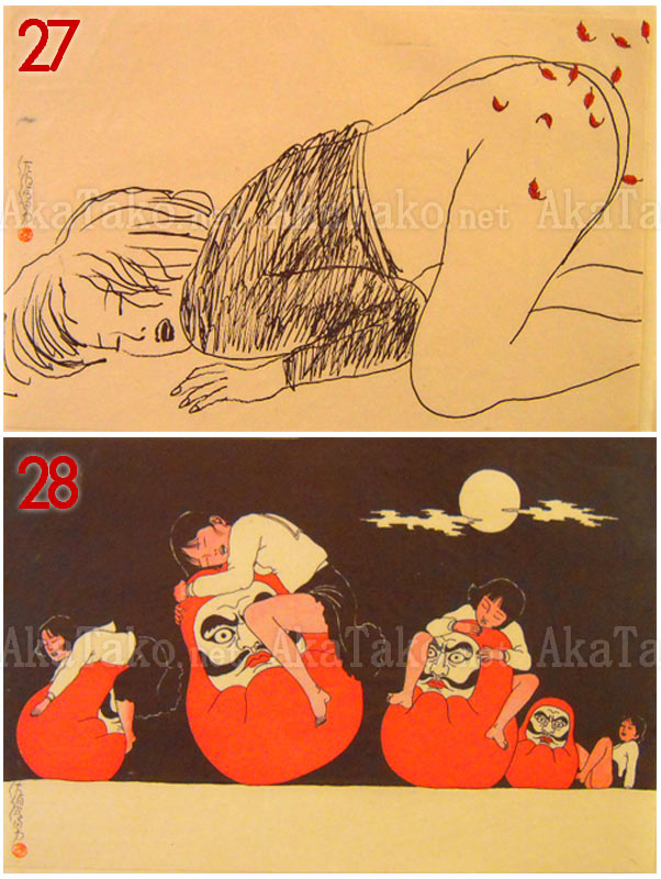 Incredibly rare prints from March 15th, 1972, which were originally made for the "Akai Hako" book by Toshio Saeki. Prints are silkscreened on paper. Originally a boxed, limited edition of 50 prints. Only 200 boxed editions were made. This boxed set has been split up and prints are sold individually. A total of 47 prints are available. Photos of the box are available upon request.