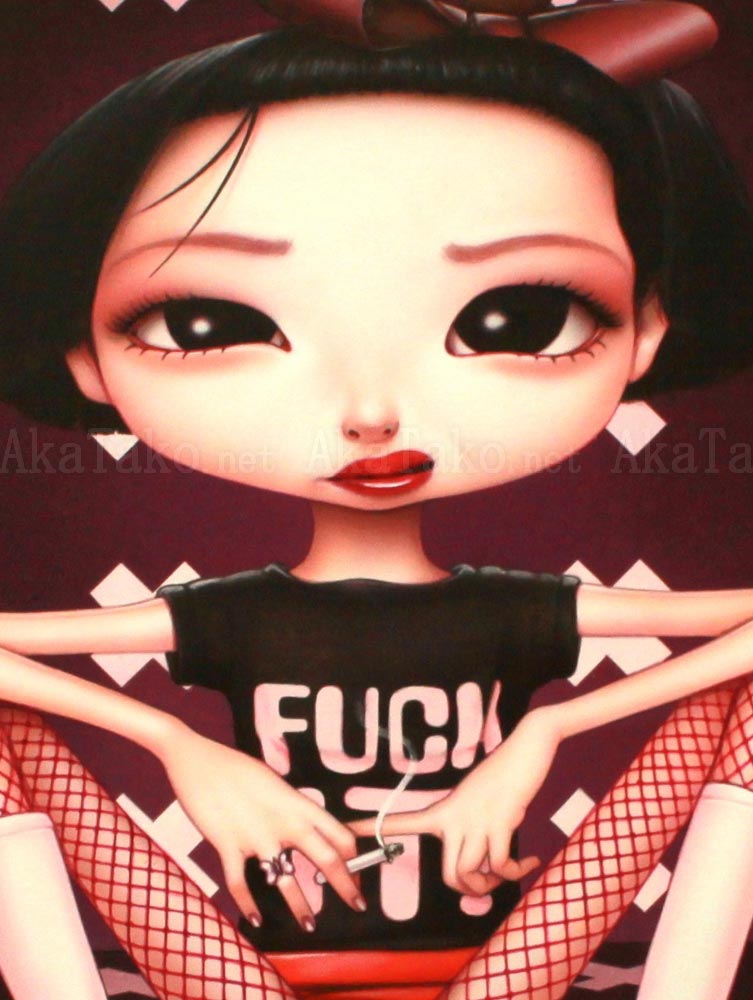 ORIGINAL painting titled "Fuck It" by Trevor Brown. Airbrush on board. SIGNED "Trevor Brown 2000" in lower right corner. Published in the book Forbidden Fruit.