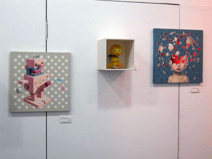 Original painting "Mister Square" is part of the "Toy Box" series by Trevor Brown. The postcard version contains this rhyme: "forty-five degree angle / not a fraction lower / geometric ejaculation of / cuboid spermatozoa.