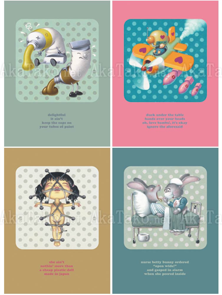 All twenty of the paintings from Trevor Brown's "Toy Box" series are collected together in a boxed postcard set. Each one includes a little rhyme like "sunday morning / wet and cold-ish / out for a walk / with my pet goldfish". SIGNED inside the front cover.