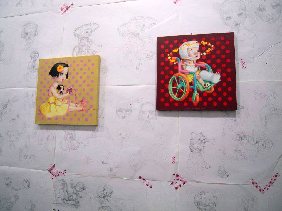 Original painting "Zelda" is part of the "Toy Box" series by Trevor Brown. The postcard version contains this rhyme: "'still playing this?' / she asked me and i telled her / i can't beat the boss / in the last level of zelda".