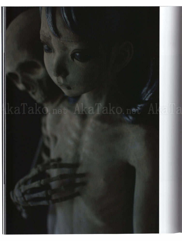 The fear of and concurrent fascination with death is superbly depicted by Hakodate artist Tsutomu Kawakami. Using the ancient dry lacquer technique of kanshitsu normally used to create statues of Buddha, Kawakami fashions gaunt yet beautiful girls who are in the clutches of death (sometimes literally). Their frail bodies already beginning to decay; the soft flesh falling away and exposing an empty rib cage or perfectly preserved like the Incan mummies or Rosalia Lombardo.
