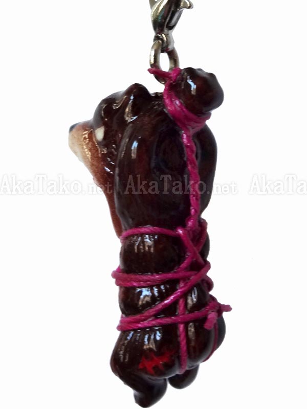 Werewolf kinbaku charm. Kinbaku cell phone strap handmade in Japan and signed by the artist (in red on back). Comes on a paper display card as shown in second photo and has a lobster claw clasp to make attachment easier.