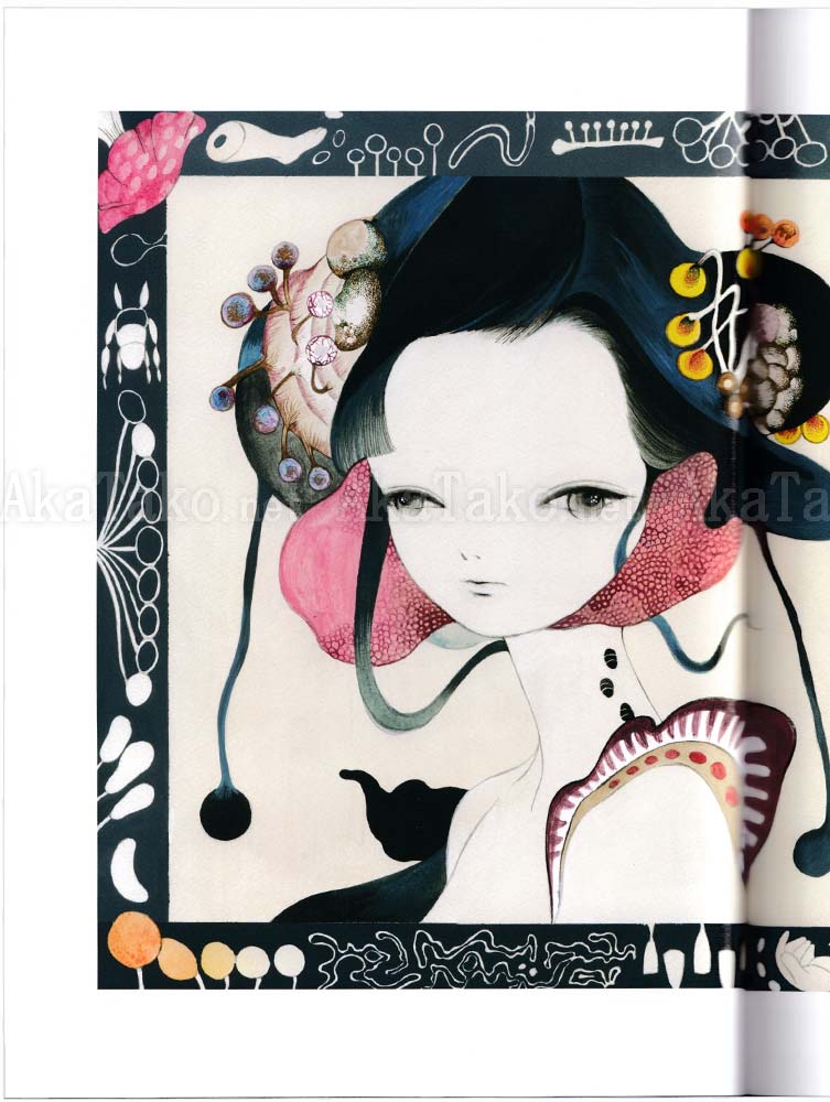 Three emerging Japanese artists created a separate book each with the same title "Wandering to Dream". Mika Nitta paints a tiny world with girls and living things viewed through an animalistic lens.